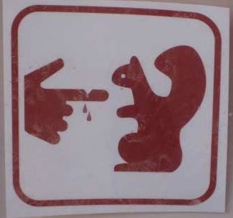 Don’t forget that squirrels bite, even ones, or maybe, especially ones that seem to be mutants from the Planet Chocolate Easter Bunny. I am struck by the lack of alarm by both parties especially considering the size of the chunk missing from of this person’s index finger. And, I don’t want to be gruesome, but where are Pinky, Ring Finger and Middle (AKA Sweary) Finger? How many encounters has this person had with this monster? Perhaps, it’s time revisit the practice/meaning of ‘hand feeding’?